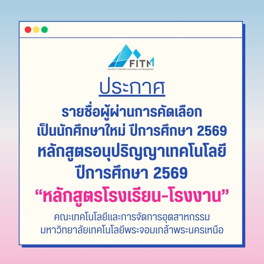 ✨ ประกาศรายชื่อผู้ผ่านคัดเลือกเป็นนักศึกษาใหม่ ประจำปีการศึกษา 2569