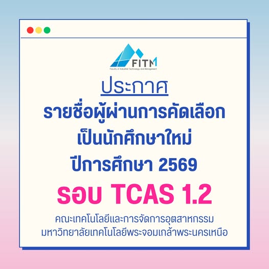 ✨ ประกาศรายชื่อผู้ผ่านคัดเลือกเป็นนักศึกษาใหม่ ประจำปีการศึกษา 2569