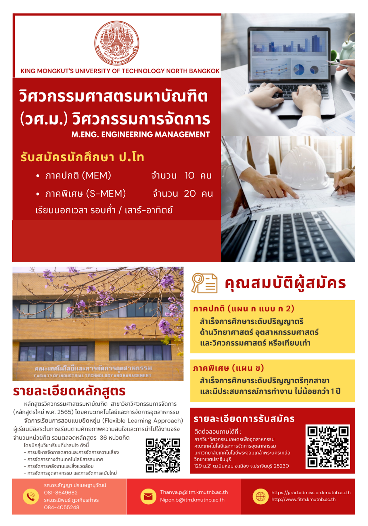 หลักสูตรวิศวกรรมศาสตรมหาบัณฑิต (วศ.ม.) สาขาวิชาวิศวกรรมการจัดการ